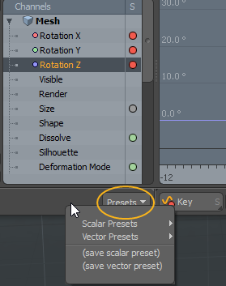 要保存预设,请选择要保存的频道,然后单击Presets视口底部的按钮。