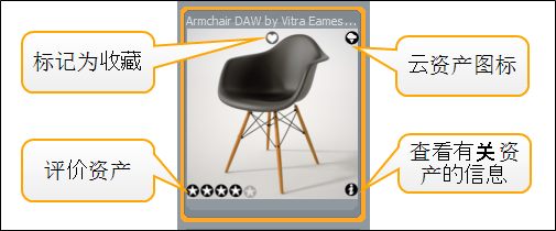 您可以将资产标记为收藏,对资产进行评级,并查看有关资产的信息。