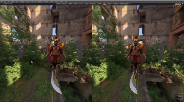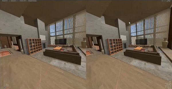 现在,您应该看到一个没有侧面板的左视口和一个右视口。如果抬起HMD并在其中移动,则视口中的视图应发生变化。