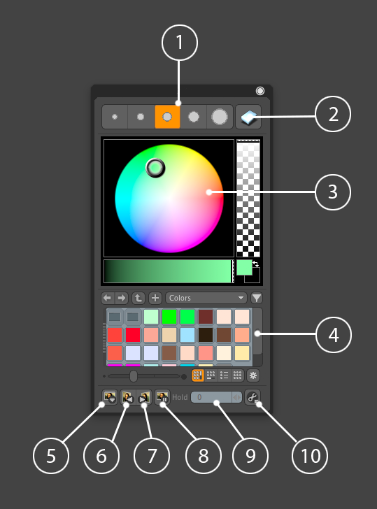 允许您在画笔处于活动状态时选择一种绘制颜色。 |