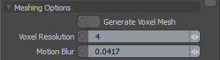有两个用途:可以加载“网格物体”图层,它们会被VDB Voxel项,或者另外可以指定粒子源,并使用Draw Mesh Surfaces启用此选项后,可以将粒子“网格化”(意味着应用了多边形表面)。定义粒子源后, Filter设置和Voxel进行设置以控制表面的外观。 |