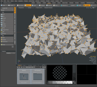 Sculpt Mode:指定使用的雕刻方法。默认情况下,设置为Automatic,它在没有位移图像时执行基于网格的雕刻,并在有可用图像时自动切换到基于图像的雕刻。您可能要强制Modo即使将图像应用于位移,也可以使用基于网格的雕刻。这样做有助于遮挡形状和窗体,因为网格雕刻仅会影响基本几何的笼形顶点。