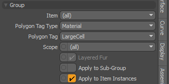 将材料组中的层的应用限制为特定的网格项(这些是项目清单)。定义时,这些被认为是Item Mask。的(all)设置将材质应用于整个场景。此设置也可以与多边形标签结合使用,从而进一步限制了表面。 |