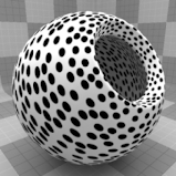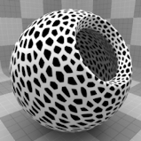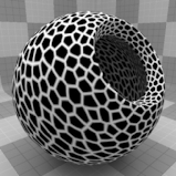 指定样式Poisson Cell质地。这些选项确定纹理如何在其采样点之间进行插值。 • Angular-在纹理的采样点之间创建某种程度的线性插值,以实现类似于鹅卵石的效果(默认设置)。您可以使用它来产生从月球表面到崎ggy皮肤的效果。 • Round-创建基于纹理随机分布的圆形斑点。在默认设置中,纹理看起来像重叠的软边点。调整设置可以产生从菜花到碎石的效果。(在示例中,由于UV贴图围绕球体拉伸,因此拉伸了它们。) 看到类型举些例子。