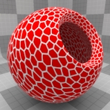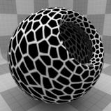 启用后,允许您在目标表面上应用非平面实体投影。这样做会失去平铺功能,并且某些单元格的角可能会与表面相交,从而导致非均匀单元格的工作方式更像常规的单元格纹理。通常, Poisson Cells纹理将平面型投影应用于曲面,其中弯曲的掠射角区域会拉伸纹理。通过将纹理作为3D实体应用,目标表面可以从3D体积中雕刻出纹理。 |