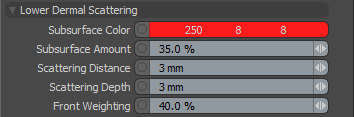 Lower Dermal Scattering -真皮下部区域包含更多血管,因此通常是贡献最大红色的层。 |