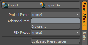 所有Export & Presets选项卡设置可以保存到预设。这使您可以自定义特定游戏引擎的设置,并将其保存以备将来使用。