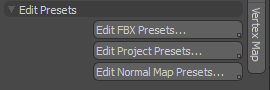 的Edit Presets的部分Export & Presets标签可让您选择现有预设并创建新预设。您可以在单独的面板中编辑FBX,项目和法线贴图预设。
