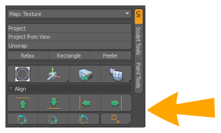 | 4. | 在左侧面板上的工具箱中,打开UV子标签,展开Align工具,然后单击以下图标之一。 |
