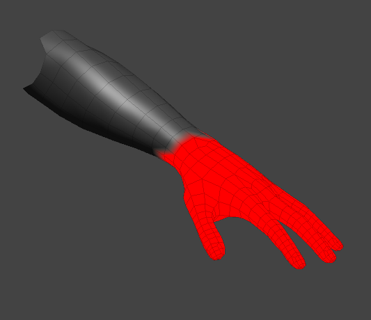 如果您在Default视图,网格的选定部分在3D视口中显示为红色,表示已为其指定默认的100%地图值。 - 调整Map Value设置重量值。