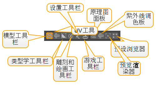 UI元素在菜单栏中显示为橙色,以使您直观地了解用于该已激活工具预设的所有各种组件。