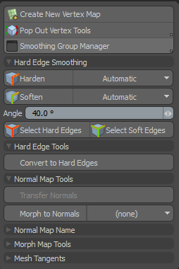 “顶点普通工具包”界面已针对Modo 12.1。它完全改变了顶点法线的处理方式。现在,您可以变形和编辑几何,并且您的更新现在将自动存储为Modo的本机平滑处理,而无需重新创建法线贴图。这个新的工具选项板使您可以快速选择硬边和软边,并选择不同类型的几何体以应用您的选择。