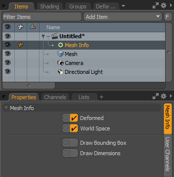“网格信息”修改器使您可以查询有关连接的网格的信息。它输出边界框,表面积,元素数量等。可以在世界空间或局部空间中查询此信息,并具有查询基础网格物体或变形网格物体的选项。