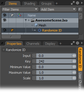 的Randomize ID通道修改器会生成随机ID值,以基于固定ID创建可预测的准随机粒子效果。