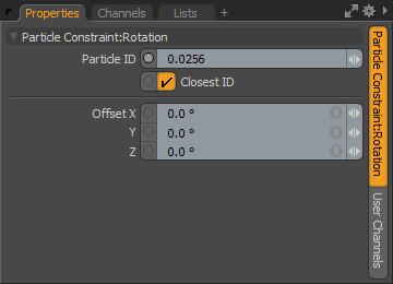 • Particle ID:此值指定项目层中的哪个粒子用作约束源。粒子ID始终指定为0.0到1.0之间的值。