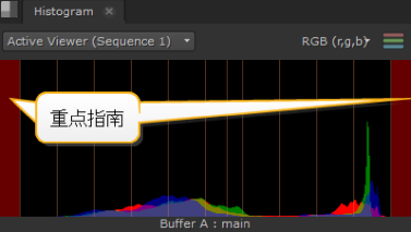内容菜单Windows > New Scope > Histogram提供三个颜色通道和亮度通道信息,这些信息描述了整个当前帧中红色,绿色,蓝色和亮度像素的分布。