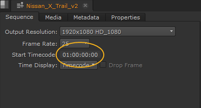 注意: 时间线默认从01:00:00:00开始,但是您可以使用更改为任何值Sequence面板。