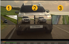 第一个图像显示了包含三个镜头的时间轴,第二个图像显示了目标(2)向右滑动的相同镜头。
