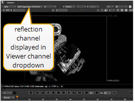 | 7. | 要查看其他频道,请按A以显示Alpha通道,然后选择lightingpasses.reflection查看器频道下拉菜单中的频道。 |